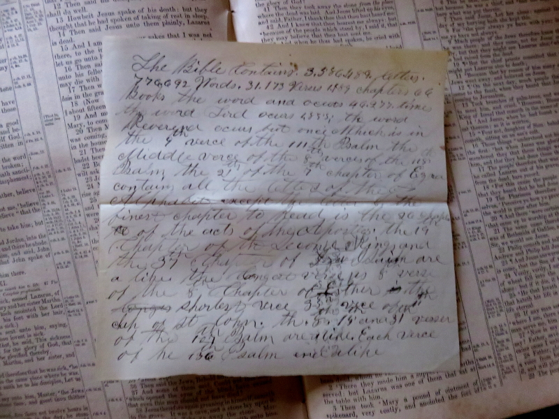 This is one sheet of a hand written sheet within the Bible. Oh I was